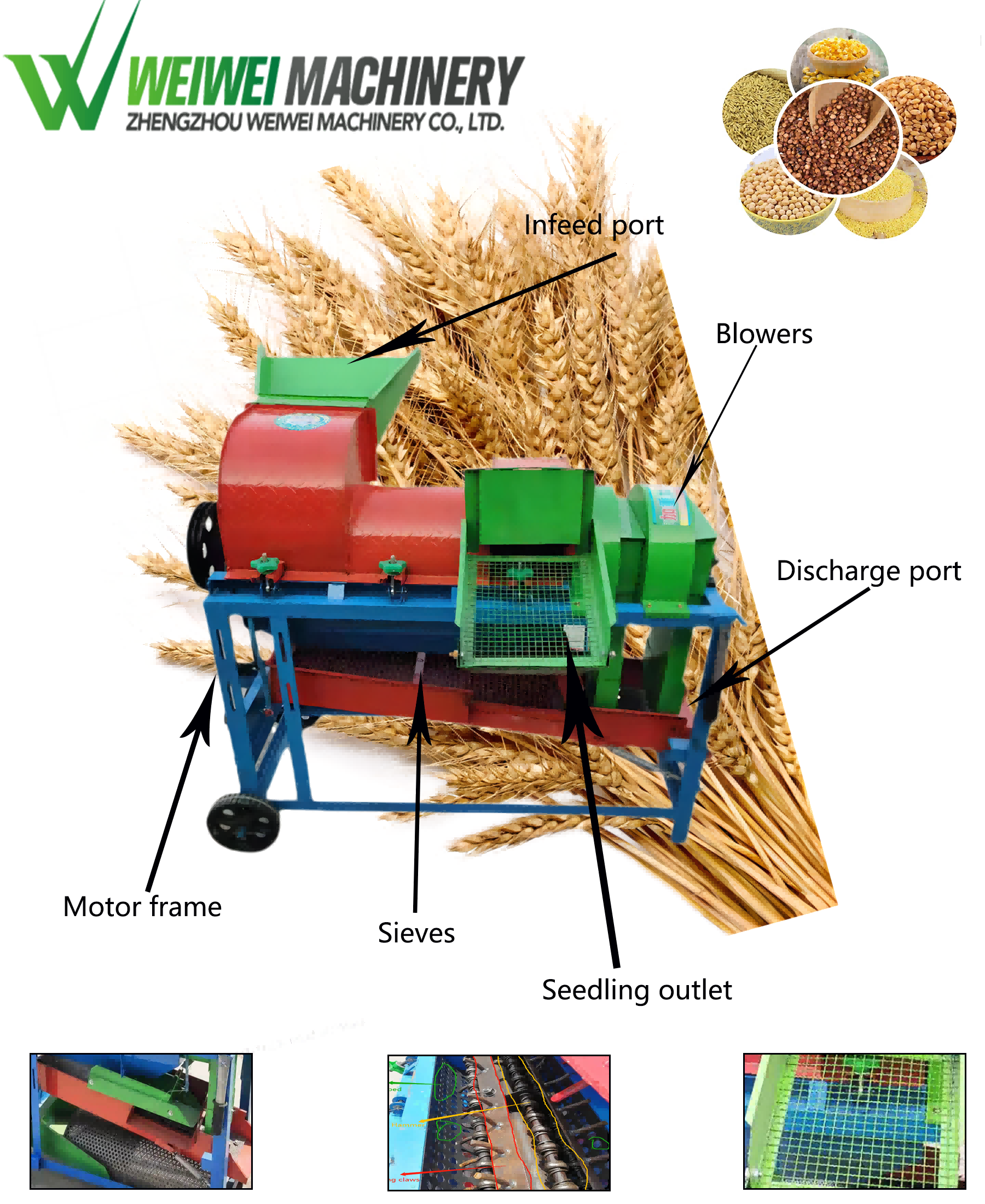 Suitable for threshing soybeans, maize, sorghum, wheat, rice etc., completing threshing, sorting and sieving operations in one pass, with a cleaning rate of up to 99%. Suitable for home use or small to medium sized farms, saving time and effort